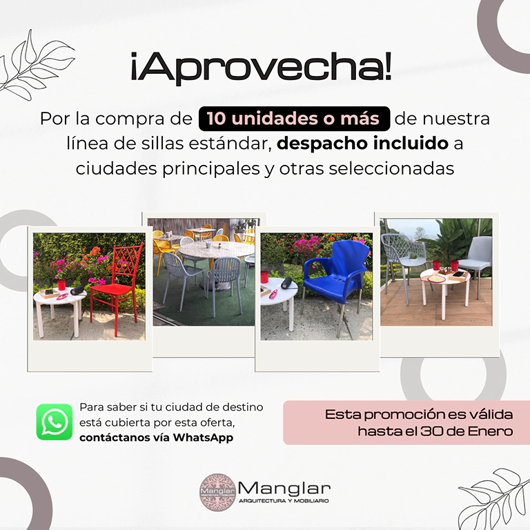 “Compramos 100 sillas Salvia con brazos y 16 mesas Z1. Recomendamos a Manglar Arquitectura por sus diseños innovadores, estética, y funcionalidad. Además, el mobiliario es duradero y cómodo. Como valor agregado, nos elaboraron un diseño para la distribución de nuestra plazoleta Macarena”